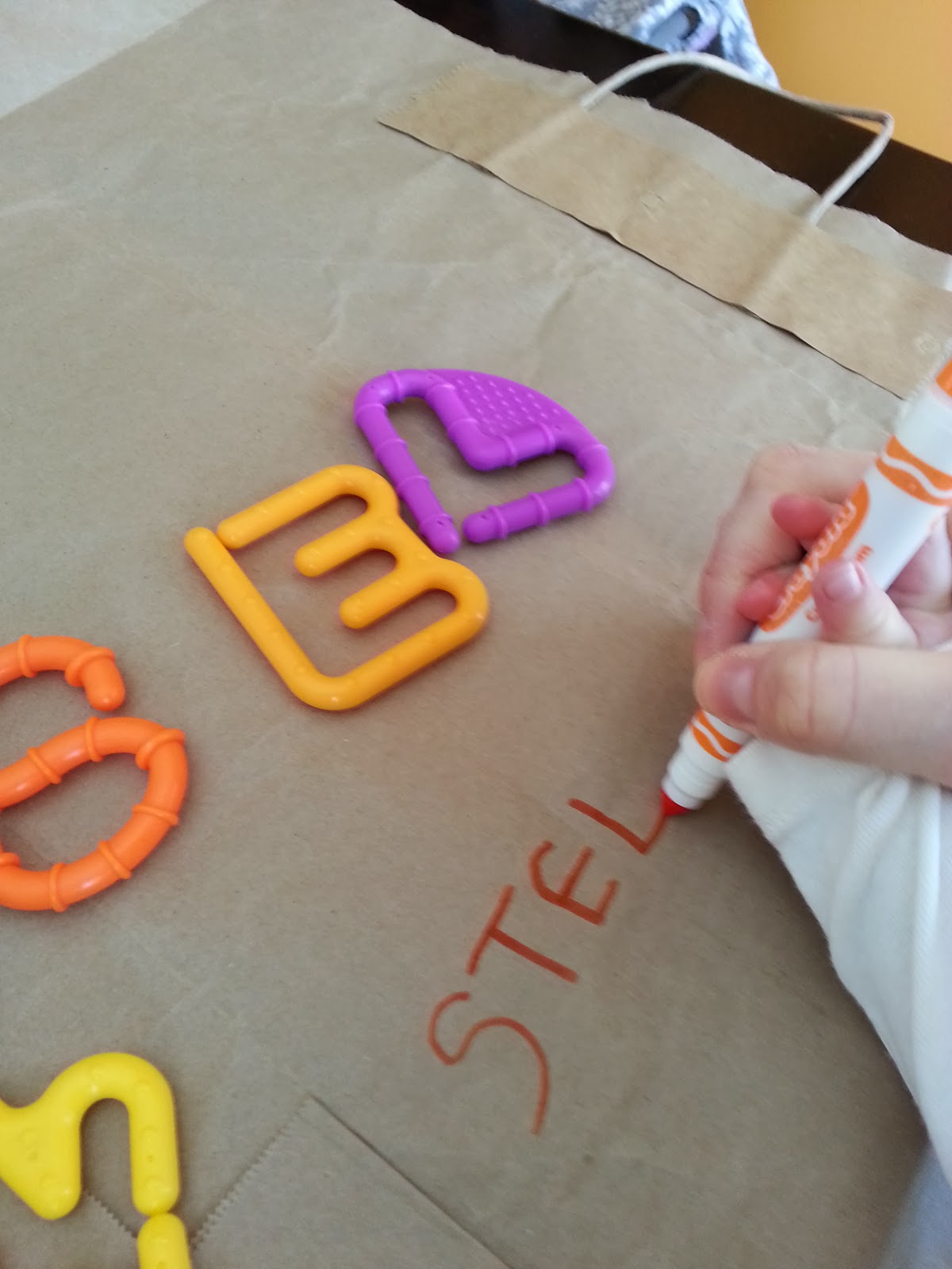 After our bunny craft, we practiced our ABCs and writing Stella's name.