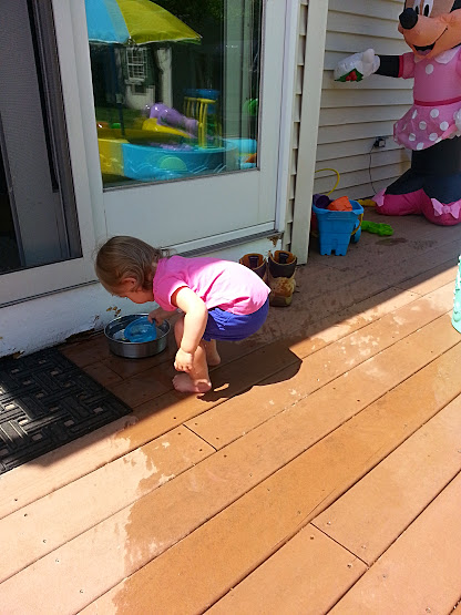 The back deck has become quite the play land. We spend so much time out there and Stella will play with anything if there is water involved; even if it is Ellie's water dish.